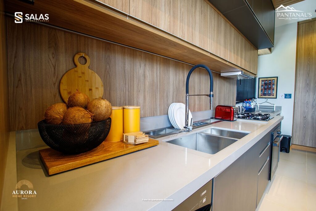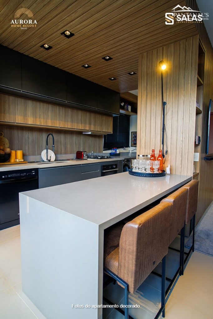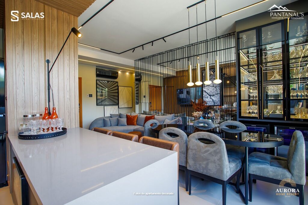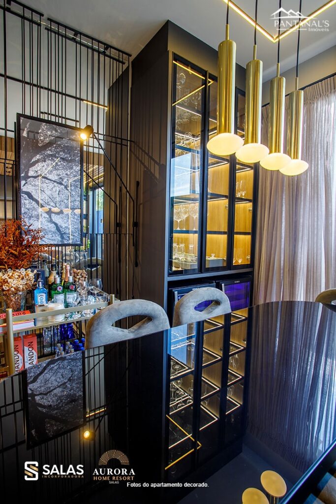 O Aurora Home Resort também conta com amplo salão de festas com churrasqueira, preparado para receber desde pequenos eventos até grandes festas, além de espaços temáticos exclusivos como o Espaço Stake, Espaço Wine, Sports Bar e até um Espaço Gourmet VIP com SPA. Perfeito para você colecionar bons momentos com a família e os amigos.