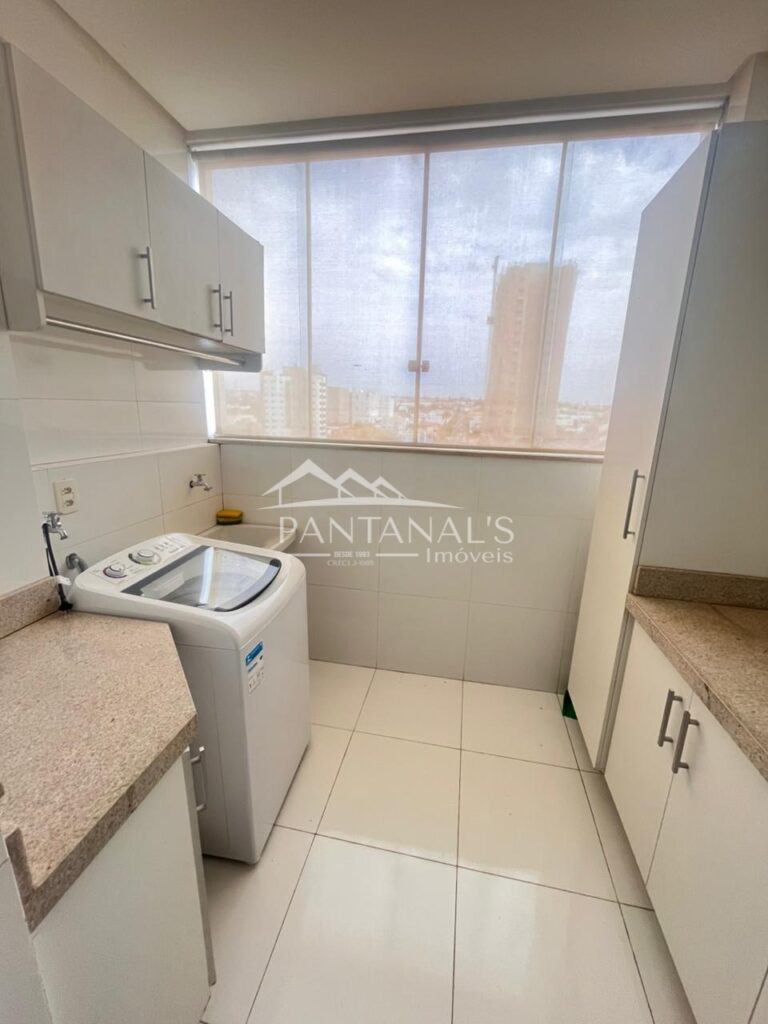 - Lavanderia: planejados; máquina de lavar e cortina