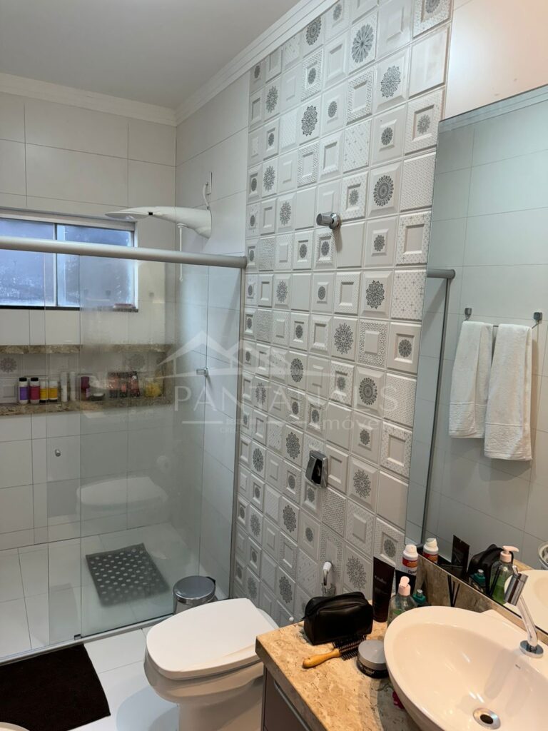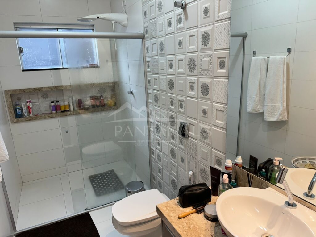- Banheiro social com planejado e box de vidro temperado