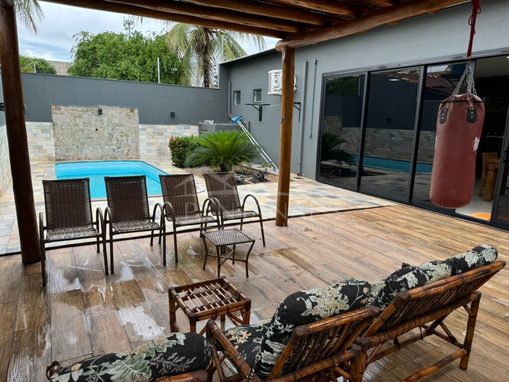 - Pergolado de madeira coberto com telhado isotérmico